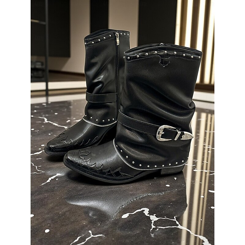 Highlights - High-quality PU upper material - Elegant synthetic leather lining - Stylish chunky heel and block heel options - Chic pointed toe design - Durable rubber outsole - Embracing the 2025 trend of Cowboy Boots