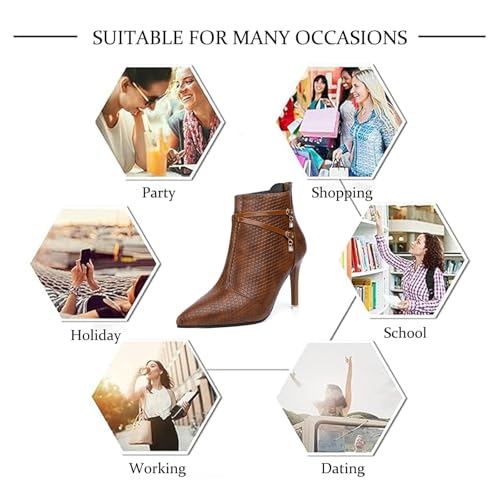 • 【Stylish Design】:These ankle boots for women feature a sexy pointed toe design that will elongate the legs visually,adds a touch of elegance and enhances your overall look.Stiletto high heel (approx 3.54 inches)and Shaft height(approx 3.94 inches) offers both style and comfort,allowing you to wear these boots for extended periods without compromising on stability or support.