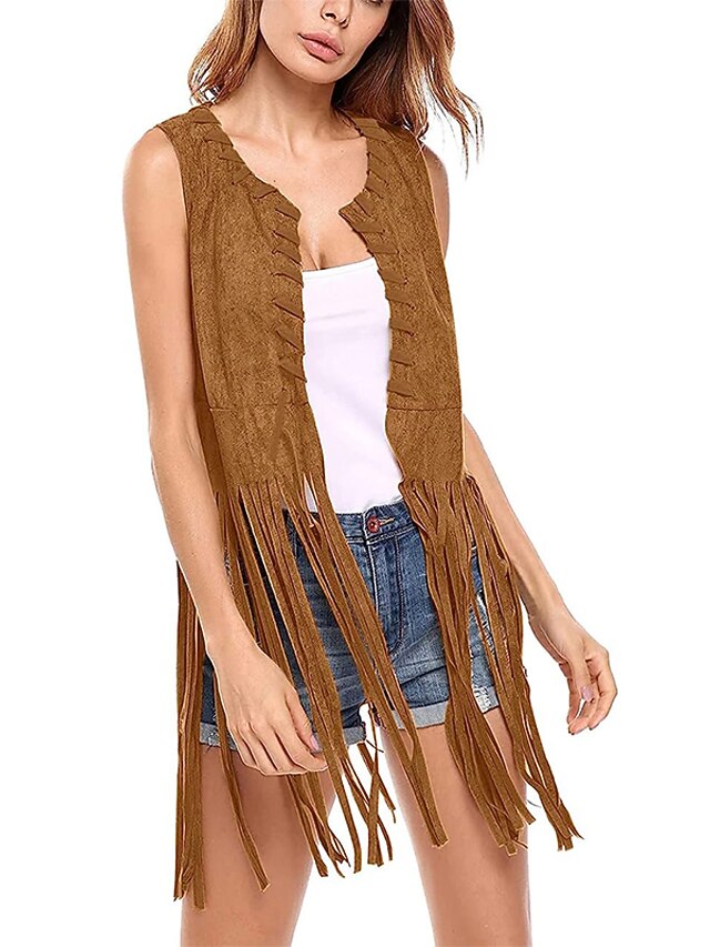 $24.99 - Hippie Vintage 1960s Hippie 1970s Suede Vest Women's Girls' Tassel Fringe Costume Vintage Cosplay Party / Evening Masquerade Casual Daily Sleeveless Vest Halloween 2025. Shop for cheap Tops online? Buy at lightinthebox.com on sale today!
