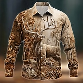 More information about Men's Reindeer Nature Forest Shirt Button Up Shirt Long Sleeve Vintage Retro Outdoor Camping & Hiking Hunting Spring Fall Turndown 3D Print Collared Shirts Brown