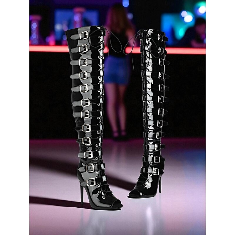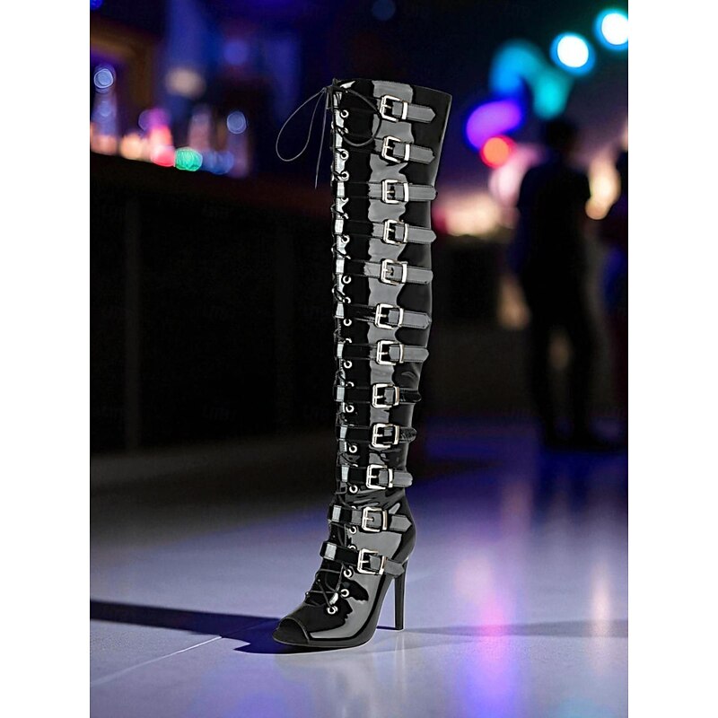 Women's White Thigh High Buckle Boots - Sexy Peep Toe Stiletto Heel Party Boots for Ladies, Gothic Punk Fashion Footwear for Nightclub, Stage Performance and Festival Outfits 4