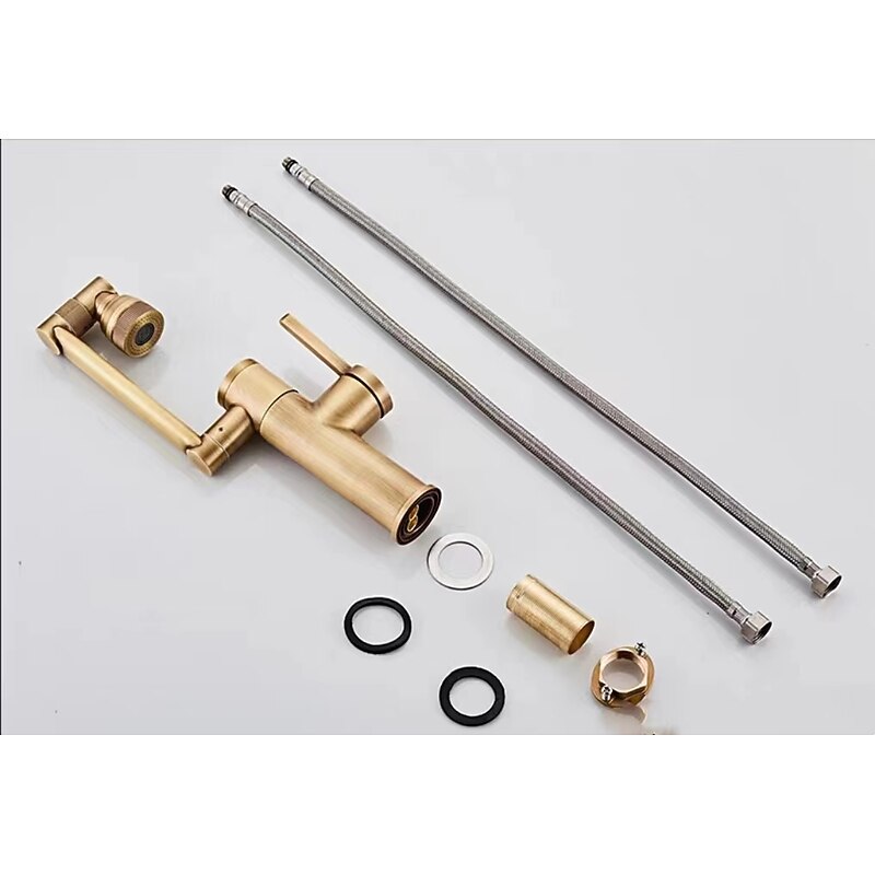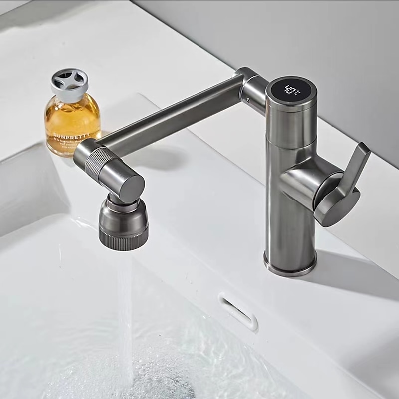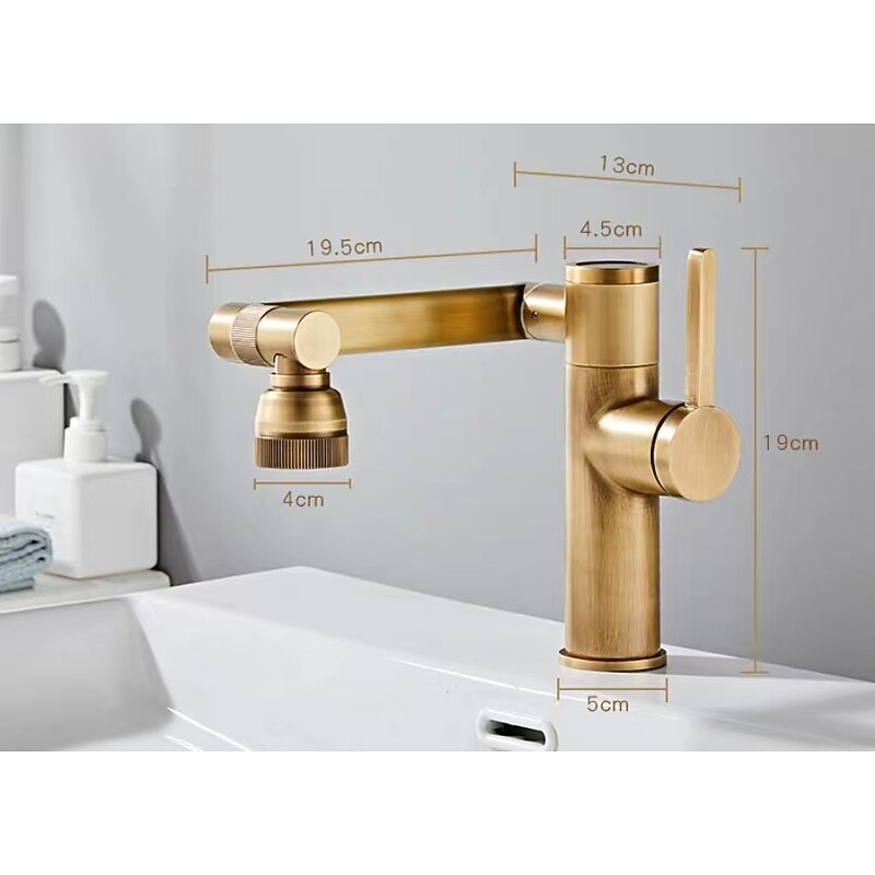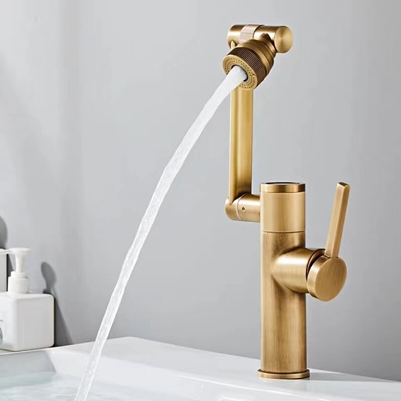 HOT ! Foldable Bathroom Sink Mixer Faucet LED Displayer, Vintage 360 Swivel Spout Rotatable Wash Basin Tap, Brass Retro Single Handle One Hole with Cold and Hot Water Hose