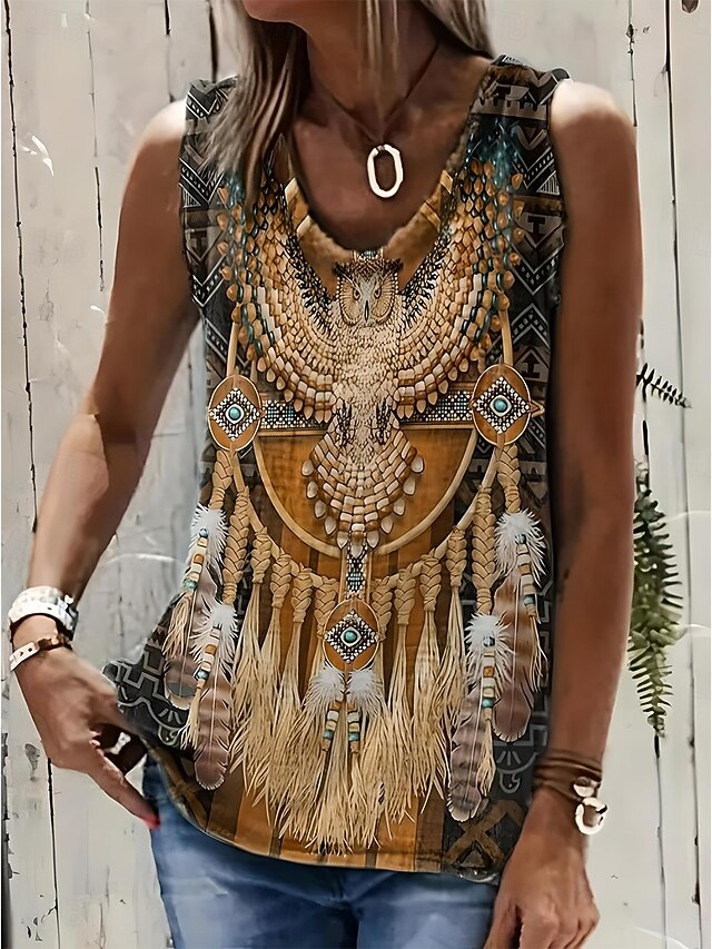 More information about Women's Camisole Tank Top Boho Tank Top Western Tank Top Floral Graphic Animal Bohemia Vintage Casual Sleeveless U Neck Regular Tops Daily Holiday Going out Print Black Khaki Gray Summer