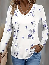More information about Easter Women's T Shirt Floral Graphic Plants Vintage Stylish Classic Long Sleeve V Neck Regular Tops Daily Print Purple Spring Fall Winter