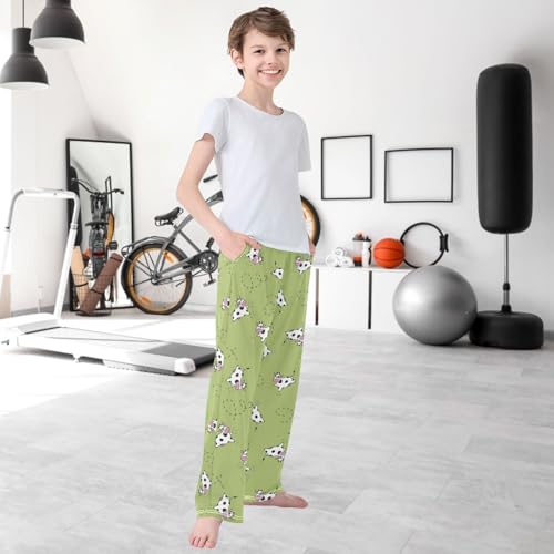 Boy's Pj Pants Flying Cow Green Grass Lounge Bottoms Elastic Kids Sweatpants Joggers with Pockets Size 6-14 4