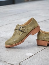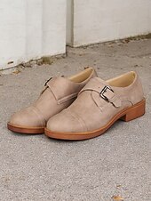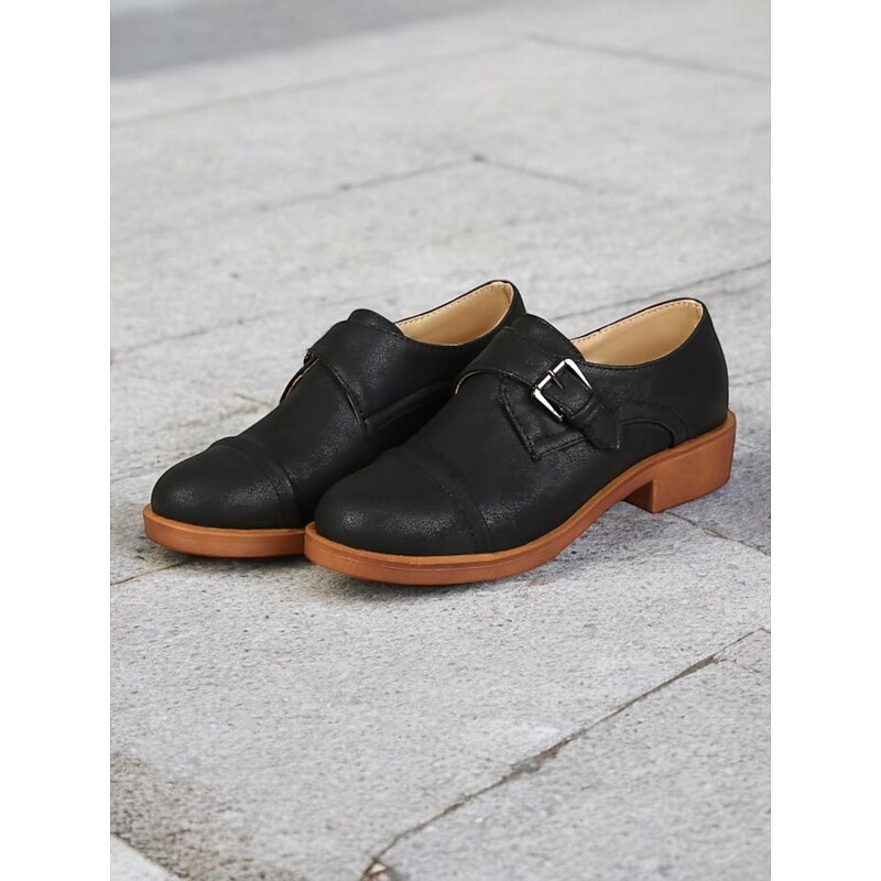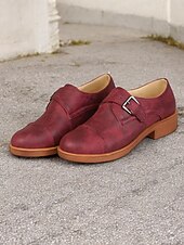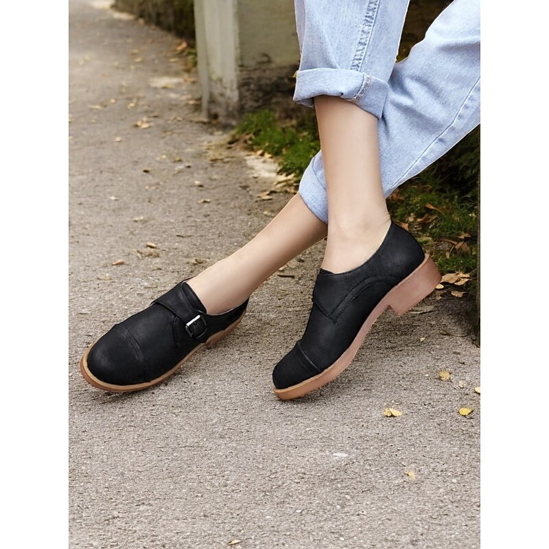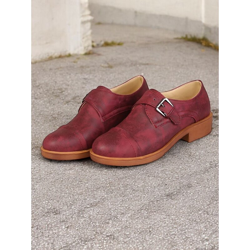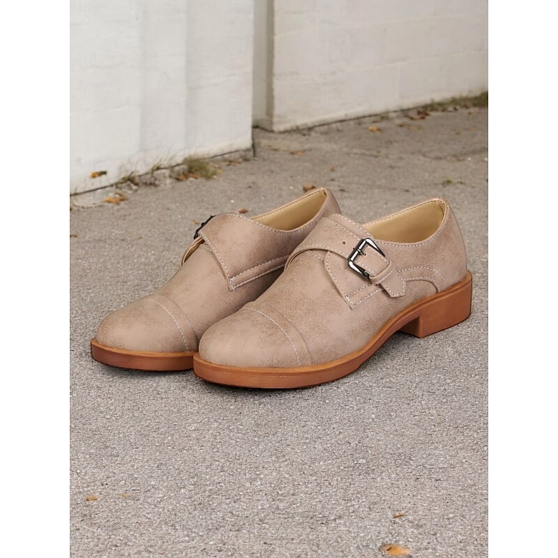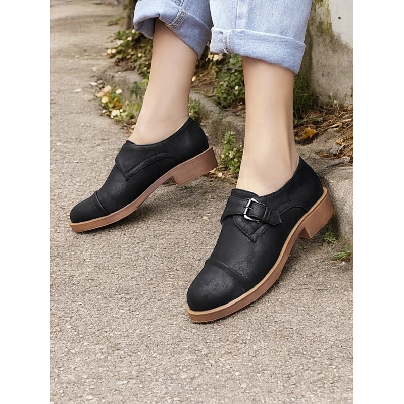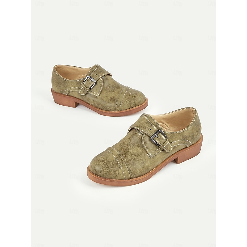 Women's Vintage Buckle Strap Oxford Shoes – Comfortable Low Heel Faux Leather Flats for Casual and Formal Outfits