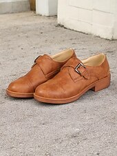 More information about Women's Vintage Buckle Strap Oxford Shoes – Comfortable Low Heel Faux Leather Flats for Casual and Formal Outfits