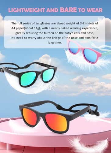 • 【BABY SUNGLASSES WITH STRAP】For extra protection against accidental loss or removal during playtime, you can securely fasten adjustable straps around the back of the child's head even the wiggliest of babies.