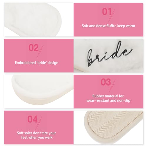 Bride Slippers for Wedding Day - White Fur Toe, Bride to Be Gifts for Bridal Shower, Bachelorette Party Outfit and Bridesmaid 4