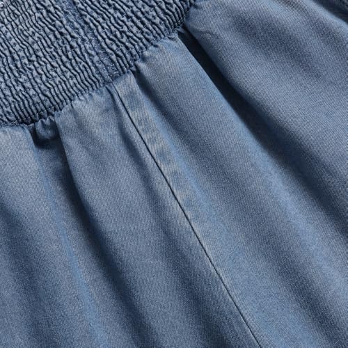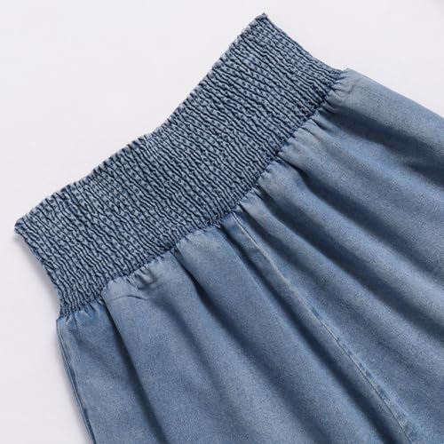 Women's Wide Leg Jeans Elastic High Waist Drawstring Loose Denim Trousers 7