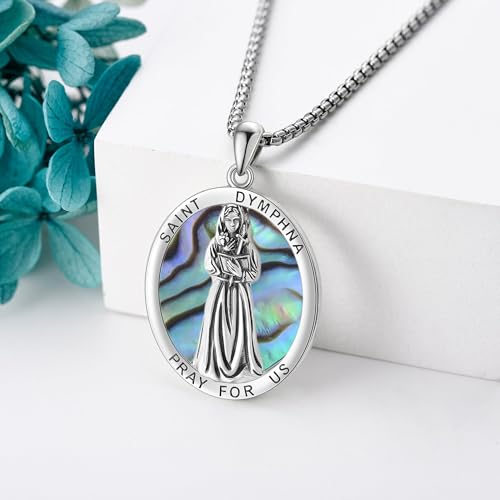 HOT ! St Dymphna Necklace 925 Sterling Silver Abalone Shell Saint Dymphna Pendant Catholic Mother's Day Jewelry for Women Mom
