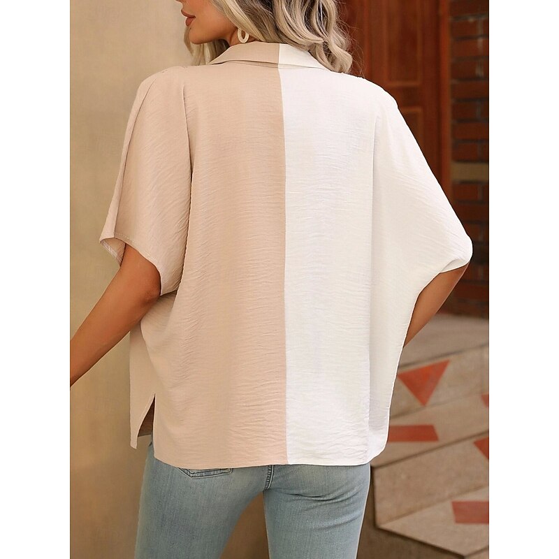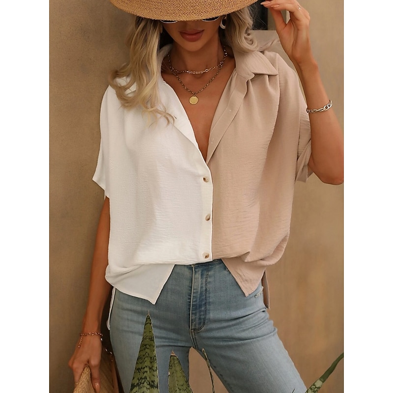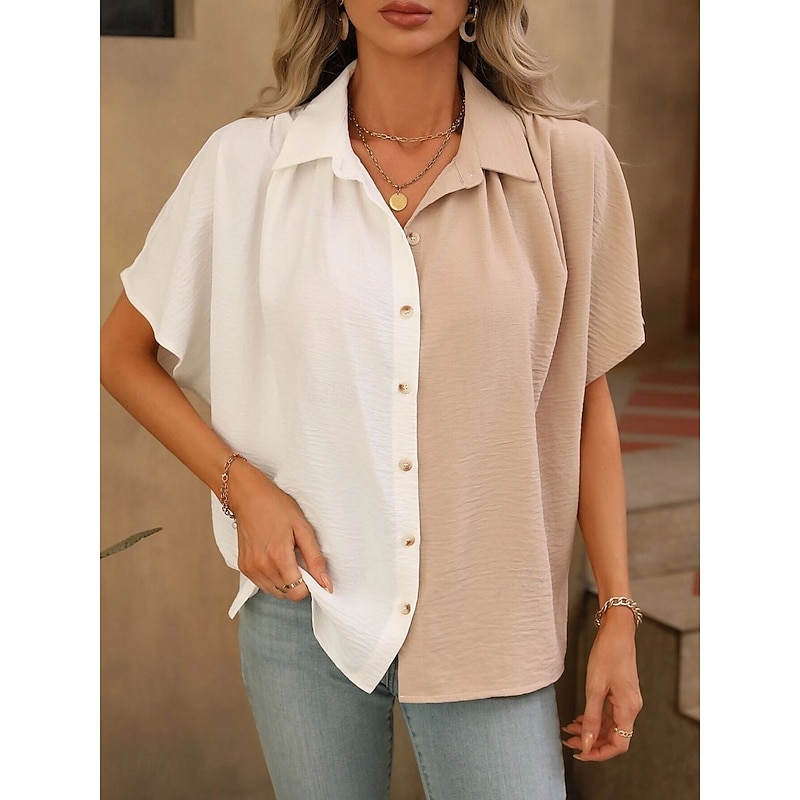 More information about Women's Shirt Blouse Solid Color Stylish Casual Short Sleeve Shirt Collar Regular Tops Daily Buttons Black White Summer Spring