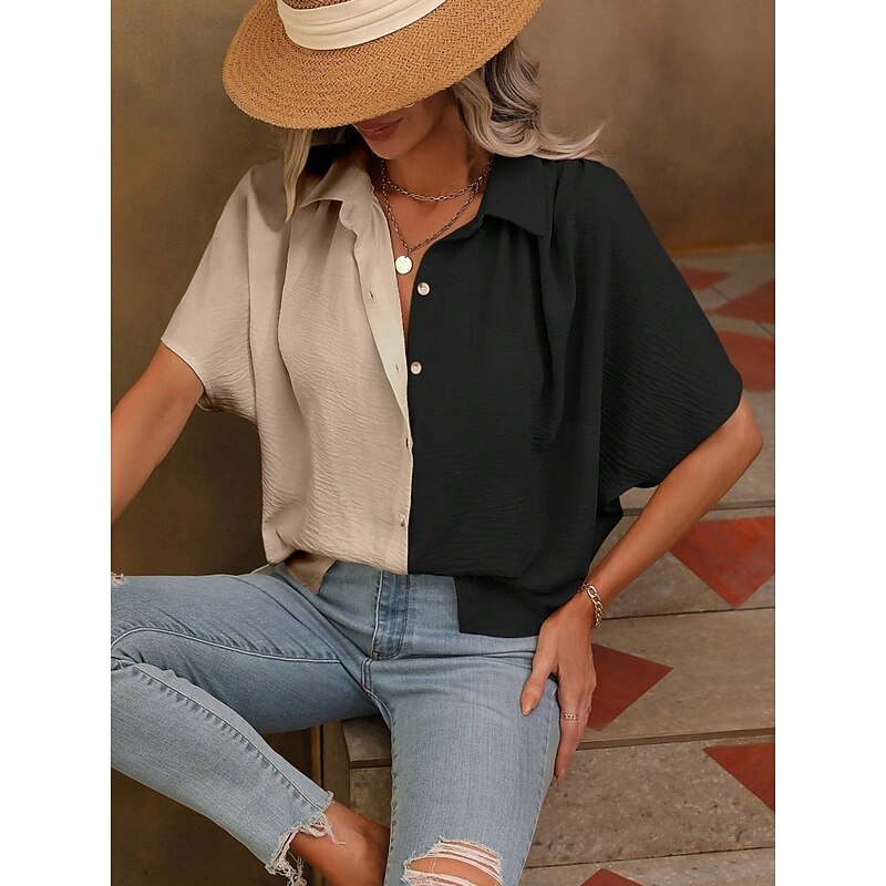 HOT ! Women's Shirt Blouse Solid Color Stylish Casual Short Sleeve Shirt Collar Regular Tops Daily Buttons Black White Summer Spring