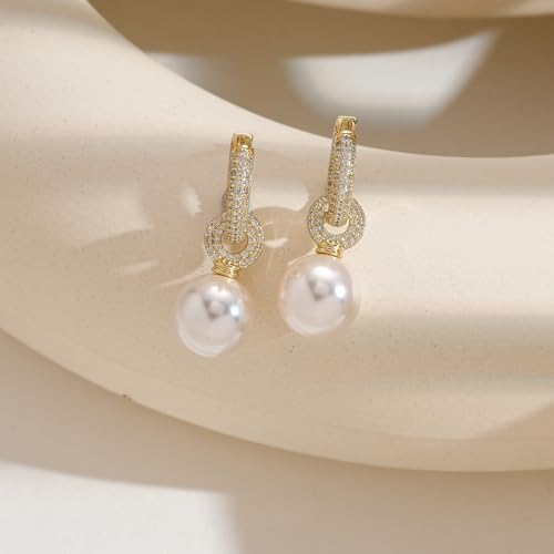 HOT ! Pearl Earrings for Women, 14K Gold Plated Pearl Drop Dangle Earrings Zircon Pearl Stud Earrings Trendy Hypoallergenic Wedding Gold Hoop Earrings for Women Bridesmaid Jewelry Gift