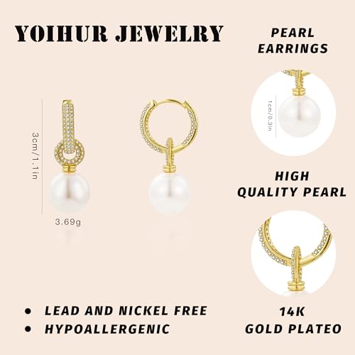 More information about Pearl Earrings for Women, 14K Gold Plated Pearl Drop Dangle Earrings Zircon Pearl Stud Earrings Trendy Hypoallergenic Wedding Gold Hoop Earrings for Women Bridesmaid Jewelry Gift