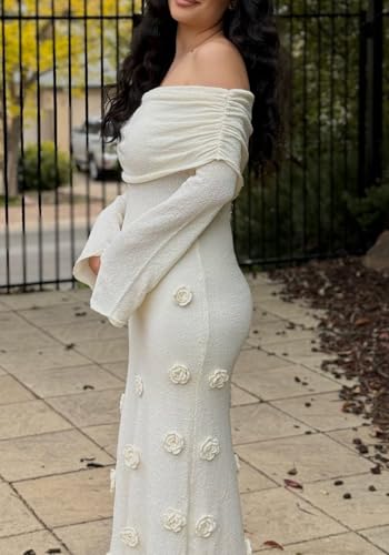 More information about Unybwonn Women Sexy Off Shoulder Crochet Maxi Dress Bodycon Stretchy Mesh Knit Dress Long Sleeve Tube Top Elegant Dresses