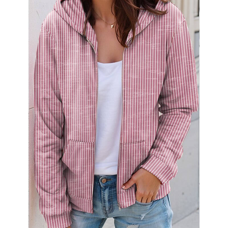 Women's Hooded Sweatshirt Jacket Long Sleeve Zip Up Hoodie With Pocket Lightweight Casual Micro-elastic Graphic Striped Fashion Street Dailywear Pocket Print Pink Blue Green Gray Spring Fall 2