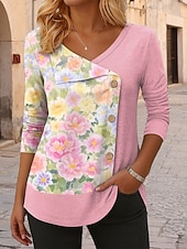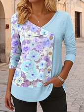 More information about Women's Blouse Tunic V Neck Long Sleeve Buttons Floral Graphic Vintage Stylish Modern Regular Tops Daily Patchwork Print Pink Blue Purple Spring Fall Winter