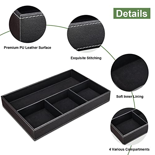 GORESE Faux Leather Valet Tray for Men, Stackable Jewelry Trays Drawer Organizer Tray Nightstand Organizer for Men, EDC Tray for Key, Wallet, Sunglass, Watch, Coin, Phone, Cologne - Black 4