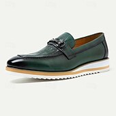 More information about Men's Green Leather Loafers - Stylish Slip-On Dress Shoes with Metal Buckle Detail and White Sole for Business, Formal Events, and Casual Outings