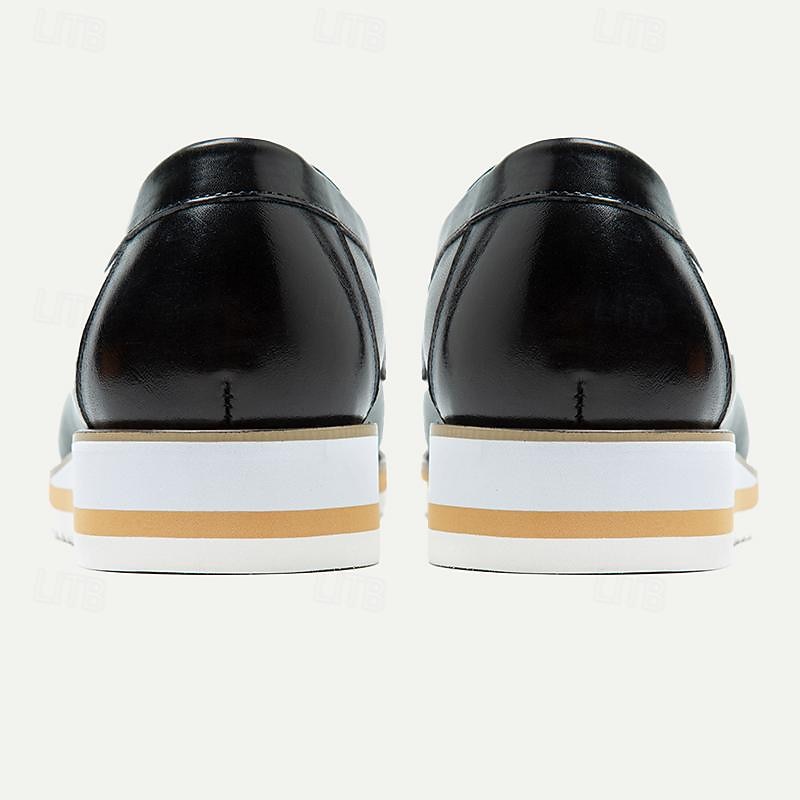 Highlights [Fabric] Crafted from premium Italian full-grain cowhide, these men's loafers boast a rich green leather upper, offering both elegance and durability. The leather lining adds comfort and promotes breathability, making them perfect for everyday wear. [Silhouette] The loafers feature a sleek silhouette that effortlessly combines traditional craftsmanship with a modern twist. The round toe design ensures a comfortable fit, while the slip-on style provides ease and practicality. [Design Highlights] Intricate detailing on the vamp showcases fine craftsmanship, complemented by a decorative metal bit across the front for a touch of sophistication. The loafers are completed with a layered sole featuring a serrated white rubber bottom, providing excellent grip and stability. [Occasions] These versatile loafers are ideal for a range of occasions—from business meetings and formal events to casual outings. They pair well with both suits and smart casual ensembles, making them a must-have in any wardrobe. [Size Range] Available in a variety of sizes from US7 to US13, these loafers cater to a wide range of foot sizes, ensuring a perfect fit for many.