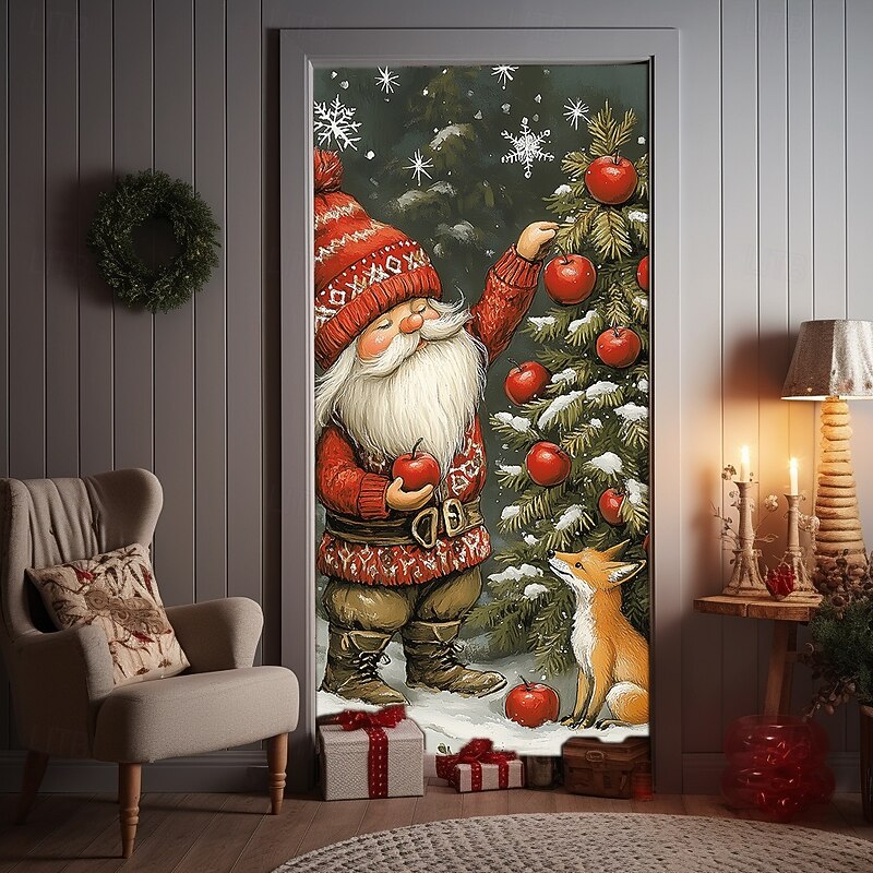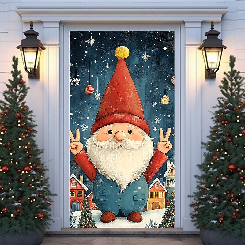 HOT ! Christmas Door Decorations Door Covers Gnomes Xmas Door Tapestry Door Curtain Decoration Backdrop Indoor/Outdoor Door Banner for Front Door Farmhouse