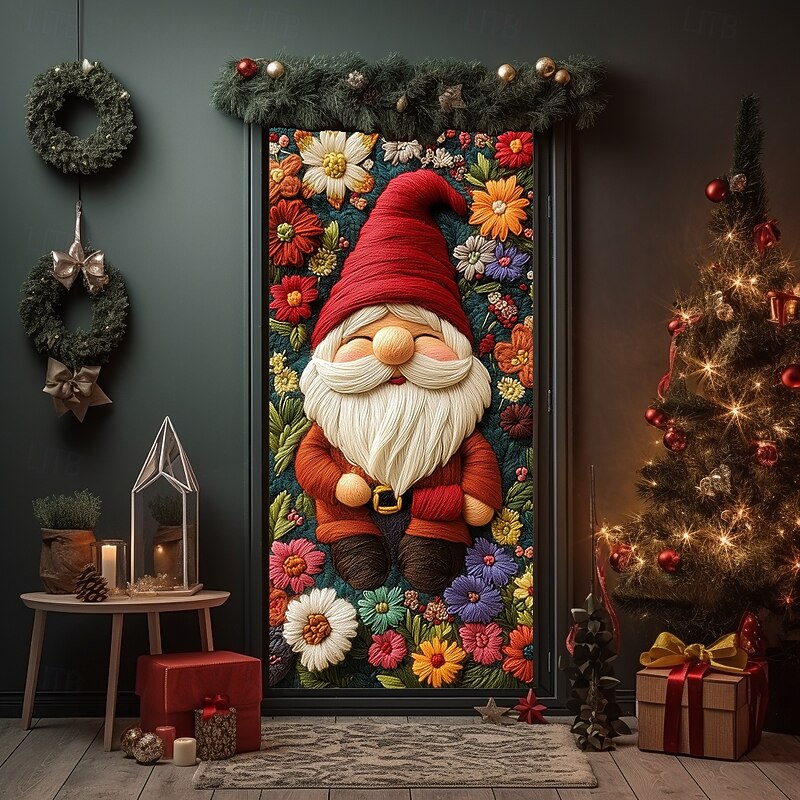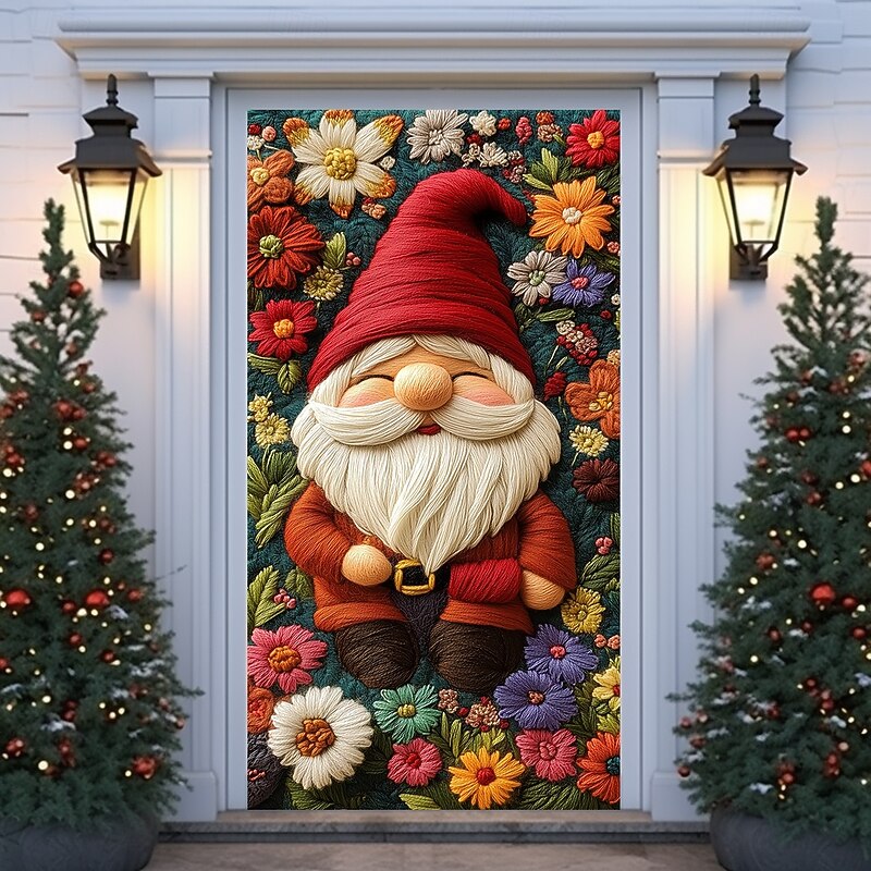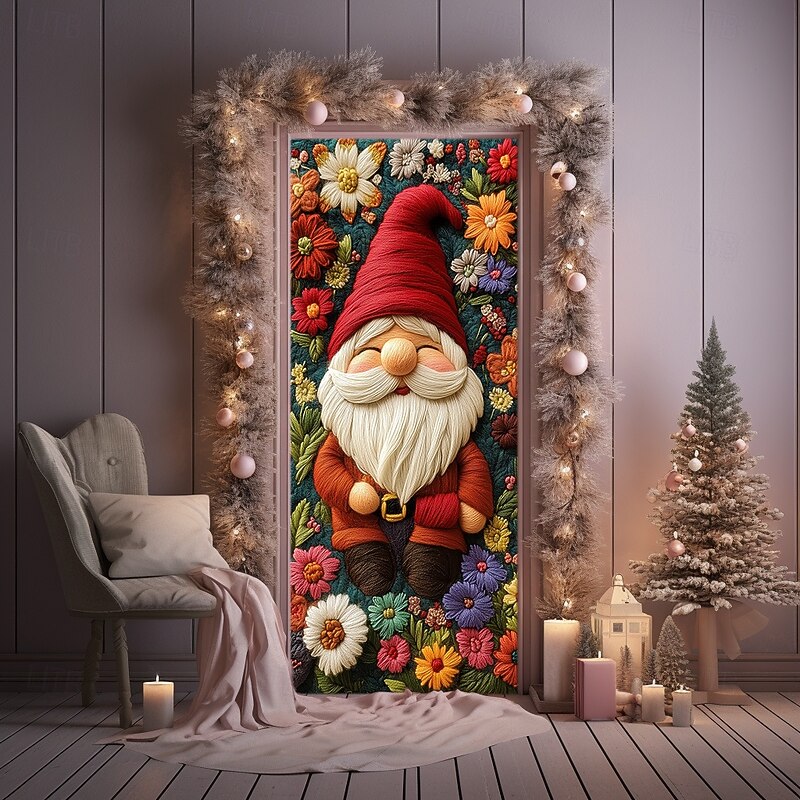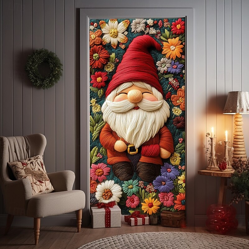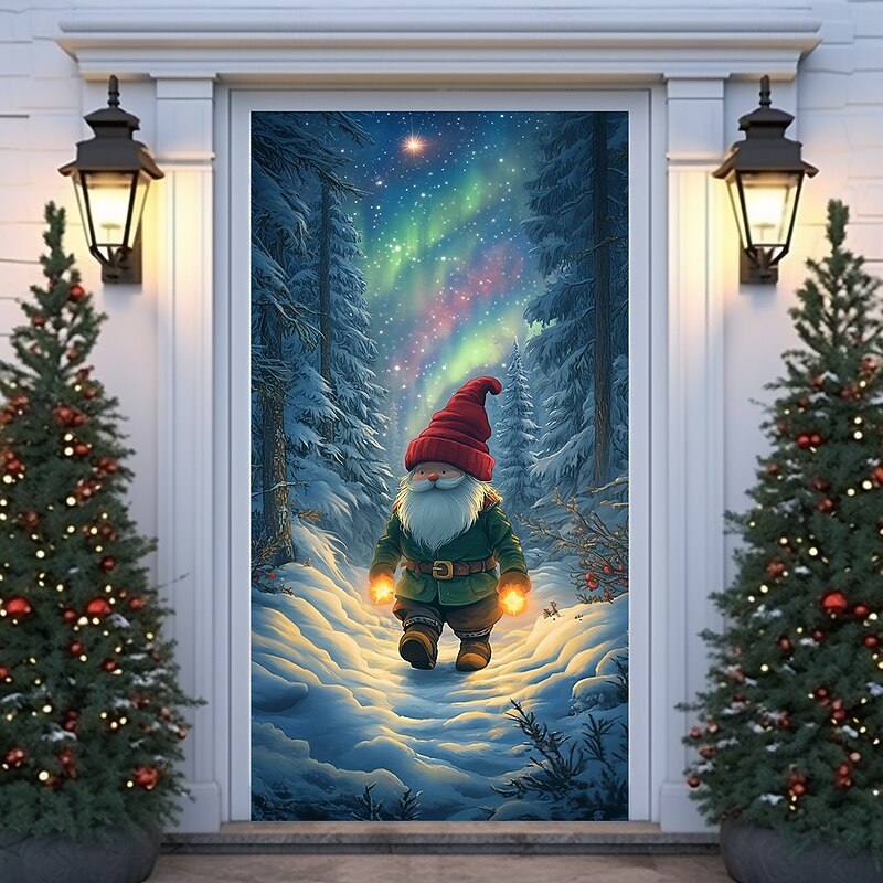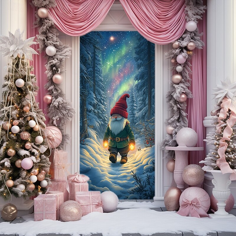 Christmas Door Decorations Door Covers Gnomes Xmas Door Tapestry Door Curtain Decoration Backdrop Indoor/Outdoor Door Banner for Front Door Farmhouse 1