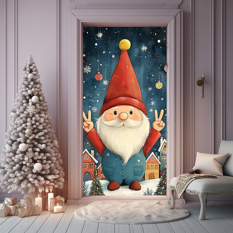 Christmas Door Decorations Door Covers Gnomes Xmas Door Tapestry Door Curtain Decoration Backdrop Indoor/Outdoor Door Banner for Front Door Farmhouse 8