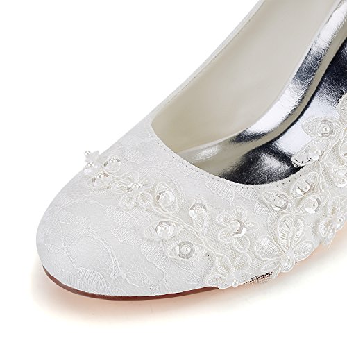 Emily Bridal Wedding Shoes Women's Silk Like Satin Stiletto Heel Pumps with Stitching Lace Flower Crystal Pearl 6