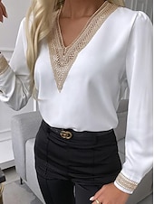 More information about Women's Shirt Blouse Lace White Shirt Daily Work Stylish Modern Long Sleeve Black Spring Fall