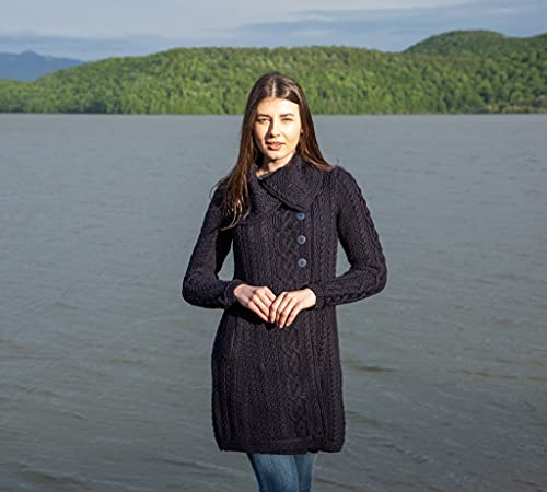 HOT ! SAOL Irish Cardigan Sweater for Women with Side Pockets and Oversized Collar - Soft Merino Blend