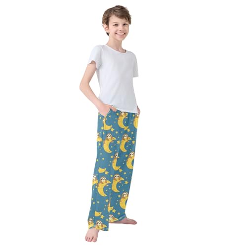 ALAZA Sloth Moon Stars Blue Background Pajamas Bottoms with Pockets Comfy Pjs Sleepwear Elastic Waistband Pajamas Pants Lounge Pants for 6-14 Years 1