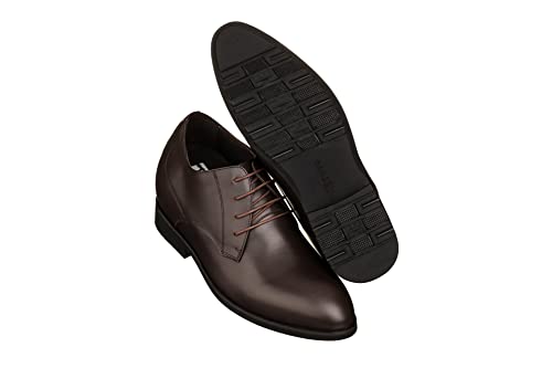 TOTO Men's Invisible Height Increasing Elevator Shoes - Coffee Brown Leather Lace-up Pointed Dress Boots - 3.6 Inches Taller - K8009 - Size 12 D(M) US 6
