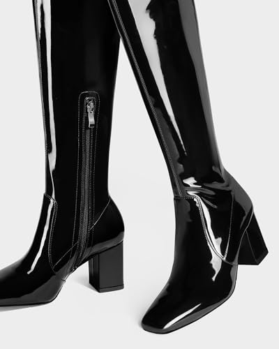 MUCCCUTE Thigh High Boots for Women Over the Knee Boots Gogo Boots Square Toe Chunky Heel Patent Leather Sexy Long Boots with Side Zipper 4