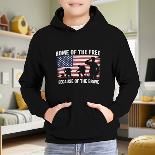 HOT ! Kid 4th Of July Home Of The Free Because Of The Brave Soldiers Boys Girls Lightweight Kangaroo Pocket Fleece Hoodies