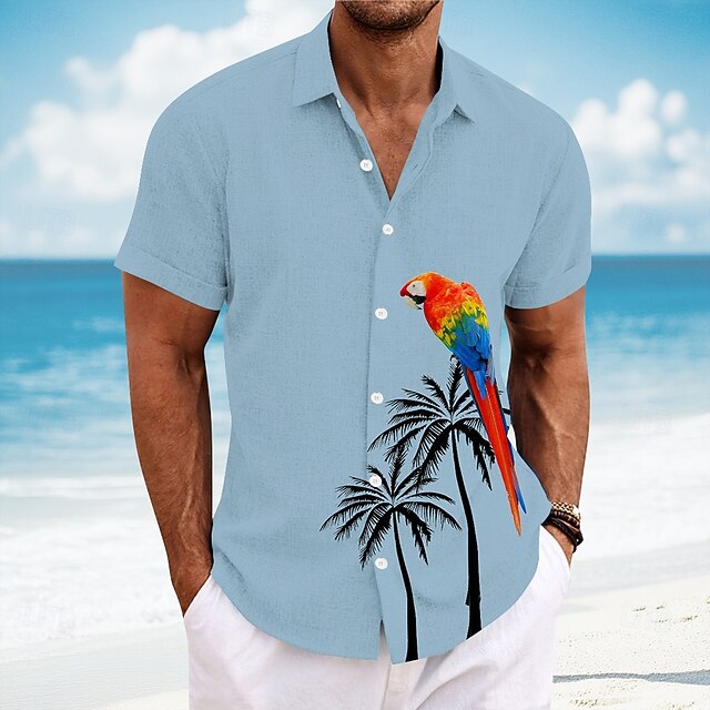 More information about Men's Bird Coconut Tree Parrot Casual Shirt Summer Hawaiian Shirt Button Up Shirt Short Sleeve Hawaiian Resort Vacation Holiday Beach Wear Summer Spring Turndown 3D Print Collared Shirts White Blue