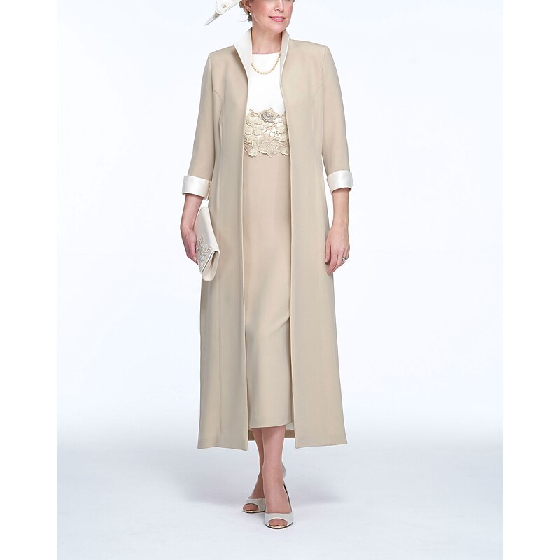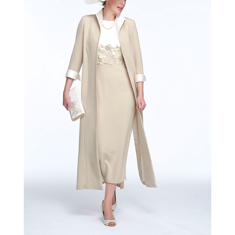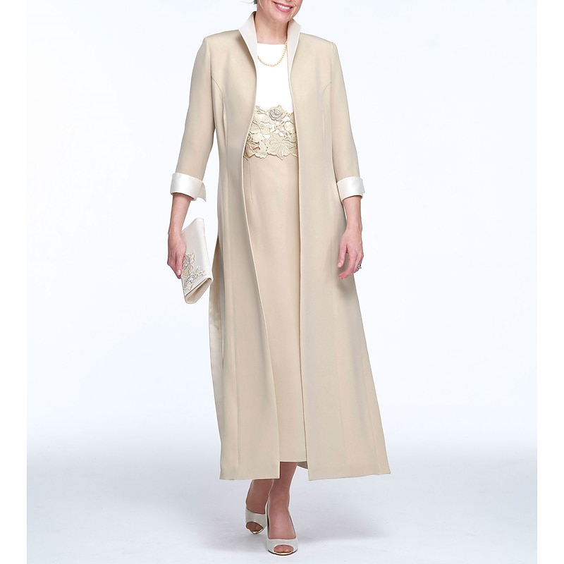 More information about Two Piece Sheath Mother of the Bride Dress Wedding Guest Church Elegant Jewel Neck Ankle Length Stretch Fabric Sleeveless with Appliques Race Day Dress