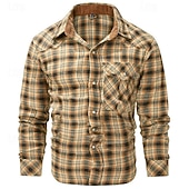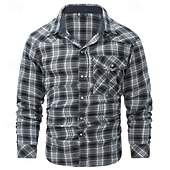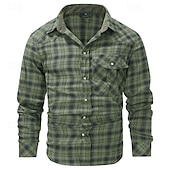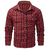 More information about Men's Shirt Casual Shirt Plaid Shirt Button Up Shirt Overshirt Checked Shirts Red Blue Green khaki Gray Long Sleeve Plain Turndown Vacation Holiday Pocket Clothing Apparel Cotton Cotton Blend Fashion