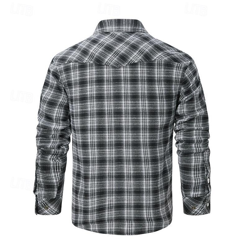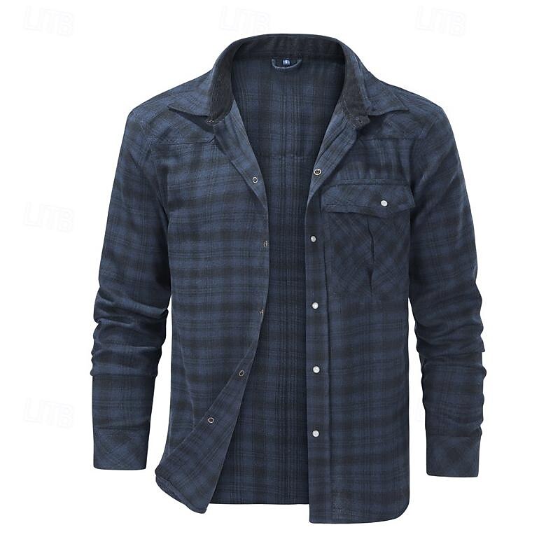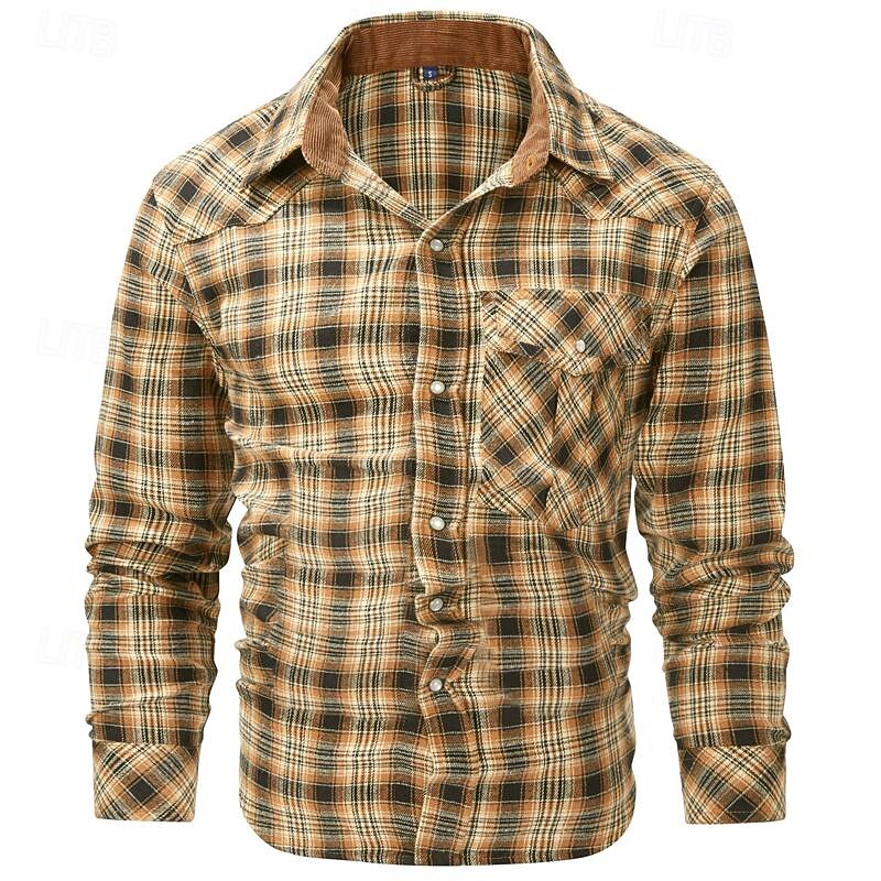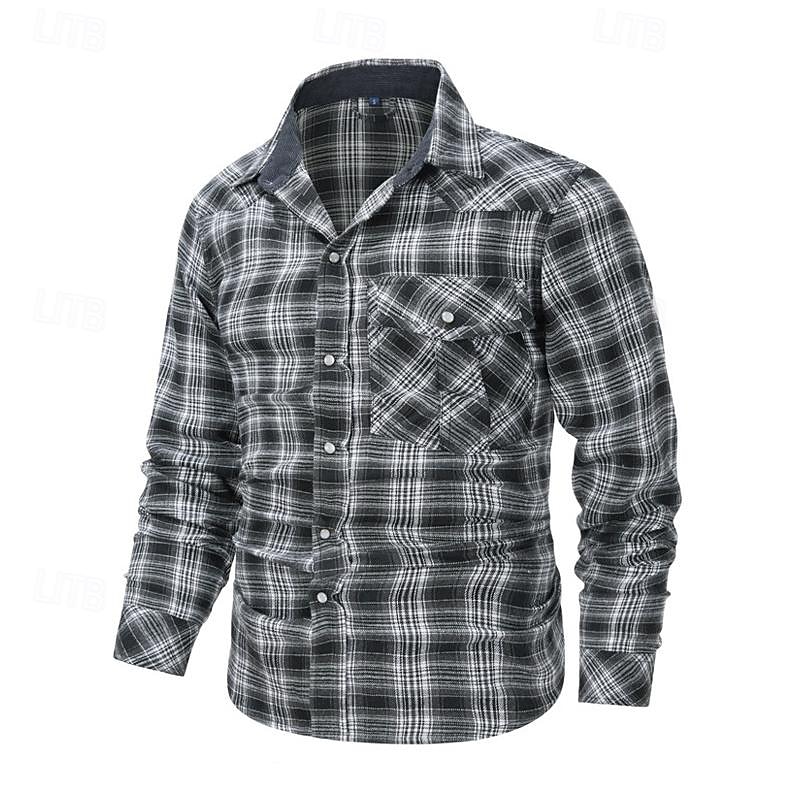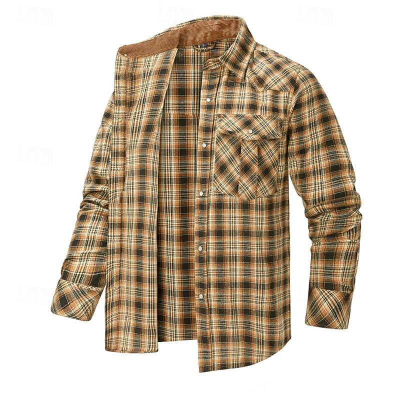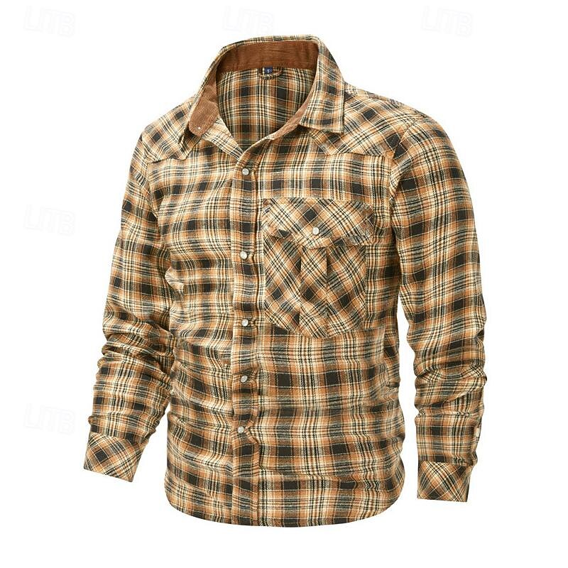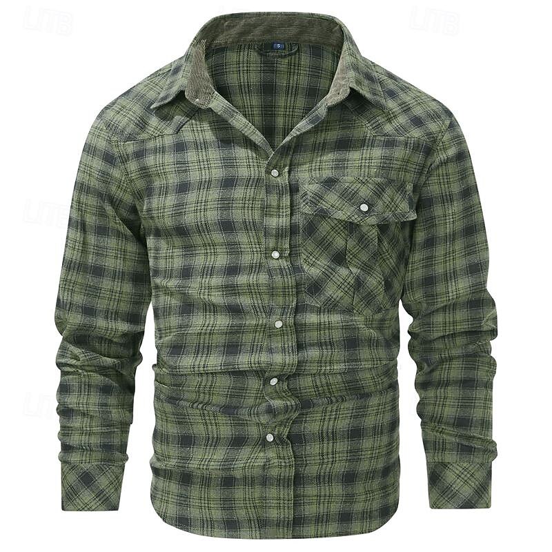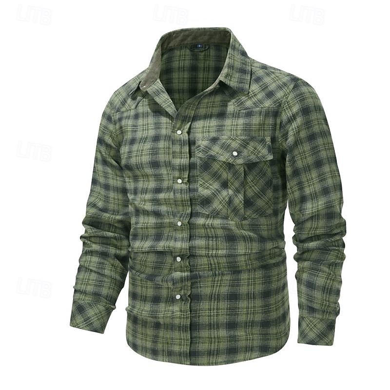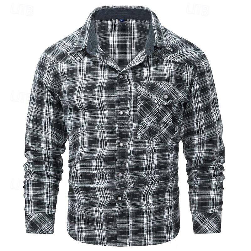 Men's Shirt Casual Shirt Plaid Shirt Button Up Shirt Overshirt Checked Shirts Red Blue Green khaki Gray Long Sleeve Plain Turndown Vacation Holiday Pocket Clothing Apparel Cotton Cotton Blend Fashion 15