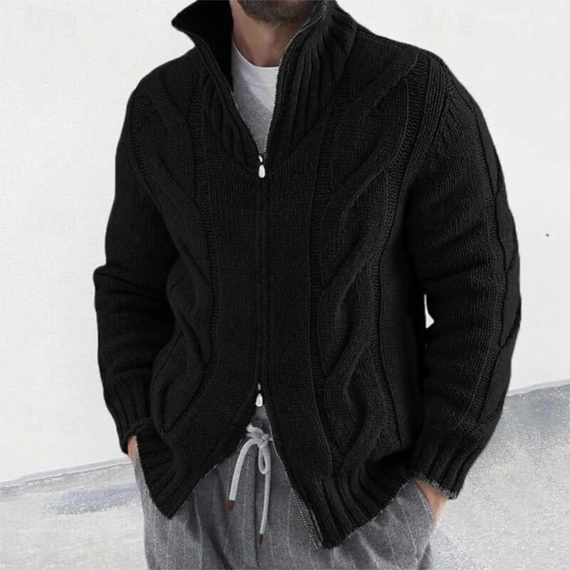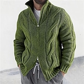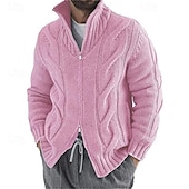 More information about Men's Sweater Cardigan Sweater Cable Knit Regular Tops Knitted Plain High Neck Vacation Fashion Casual Daily Wear Clothing Apparel Spring & Fall Black Pink S M L