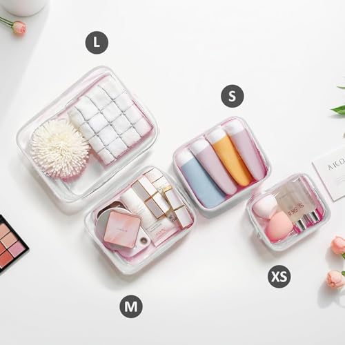 4 Pack Clear Toiletry Bags, Portable Travel Makeup Pouch with Zipper, TSA Approved Organizer, Clear Pouch Bags Compatible With Bogg Bag Divider Accessories (Clear White) 7