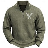 Men's Reindeer Deer Pullover Sweater Jumper Zip Sweater Polo Sweater Zip Collar Retro Vintage Casual Party Evening Wear Daily Embroidered Knitting Warm Long Sleeve Fall Winter Army Green Brown