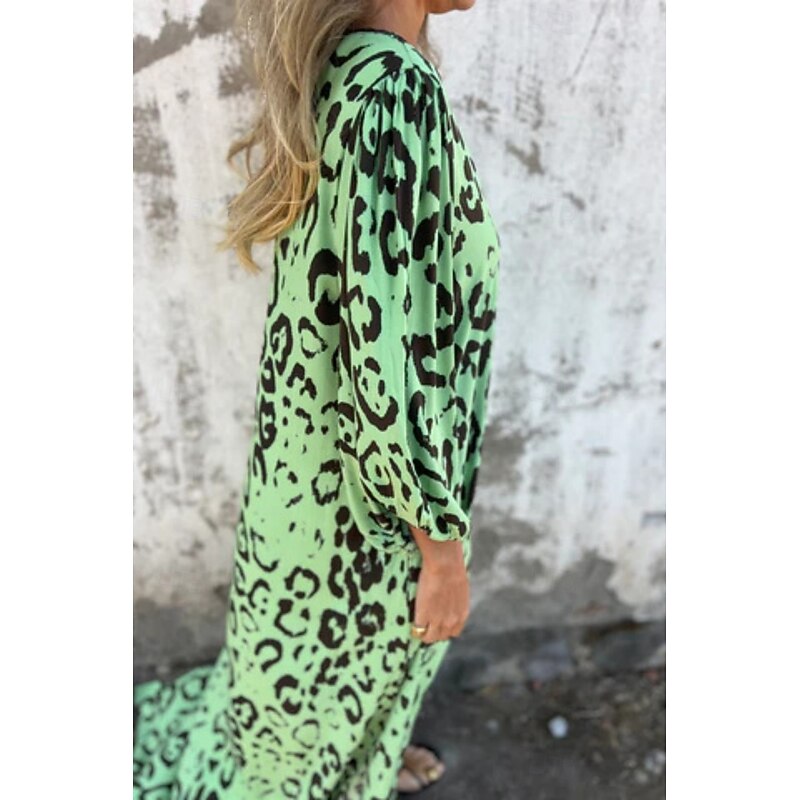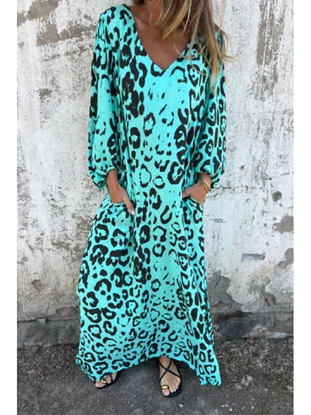 HOT ! Women's Maxi Dress Casual Dress Boho Chic Dresses Bohemia Casual Boho Vacation Daily Beach Loose Fit Leopard 3/4 Length Sleeve V Neck Blue Green Summer Spring
