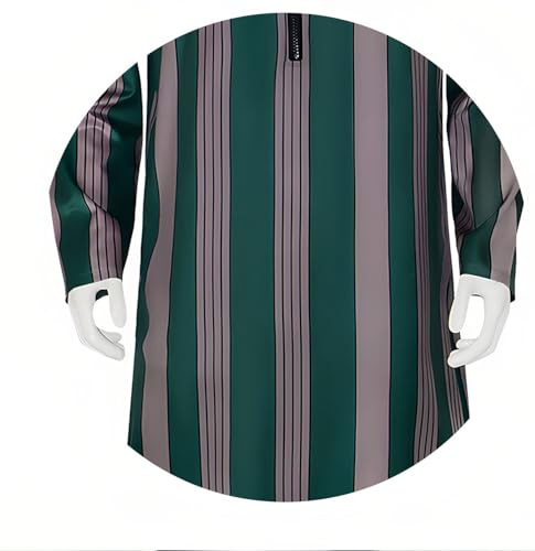 • Stylish Design: This men's thobe features a striped pattern in shades of green, grey, and white for an elegant look.