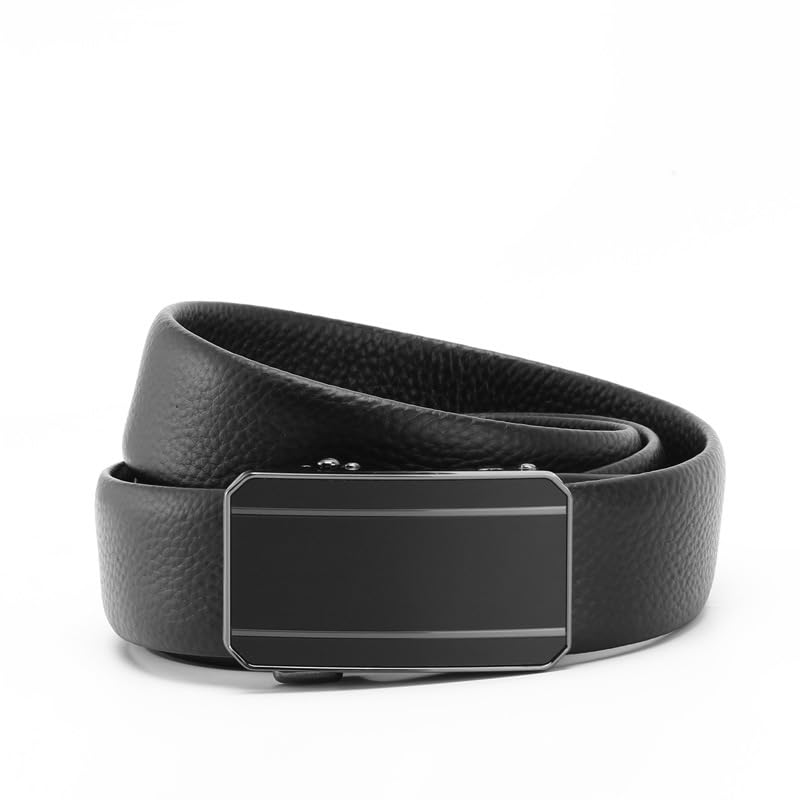 Men's Genuine Leather Belt with Automatic Buckle, Black 1