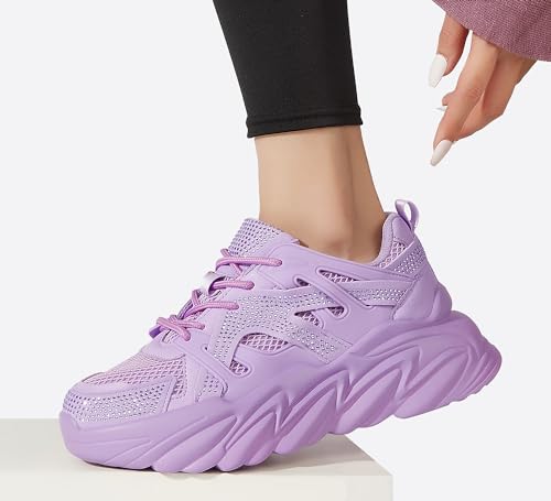More information about LUCKY STEP Women's Chunky Rhinestone Fashion Sneakers | Sparkly Platform Thick Dad Rave Mesh Walking Shoes