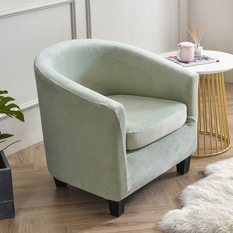 Velvet Club Chair Barrel Chair Slipcover Tub Chair Cover with Seat Cushion Cover Non Slip Furniture Protector Couch Cover with Elastic Bottom for Hotel Bar,Sage Green 27