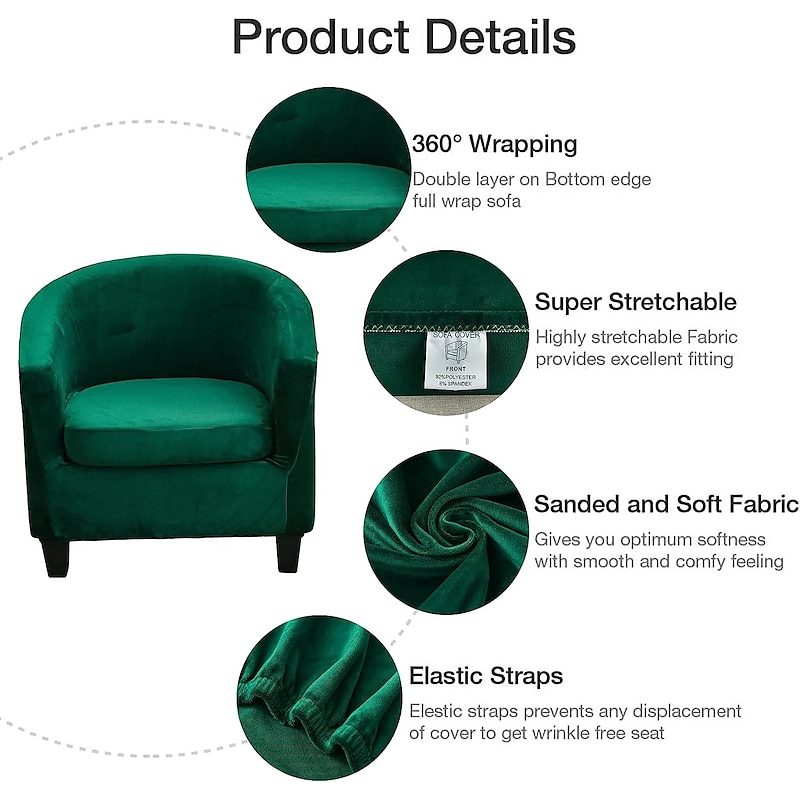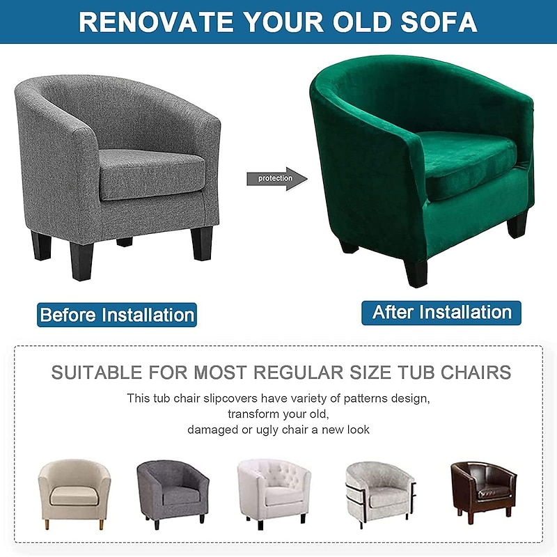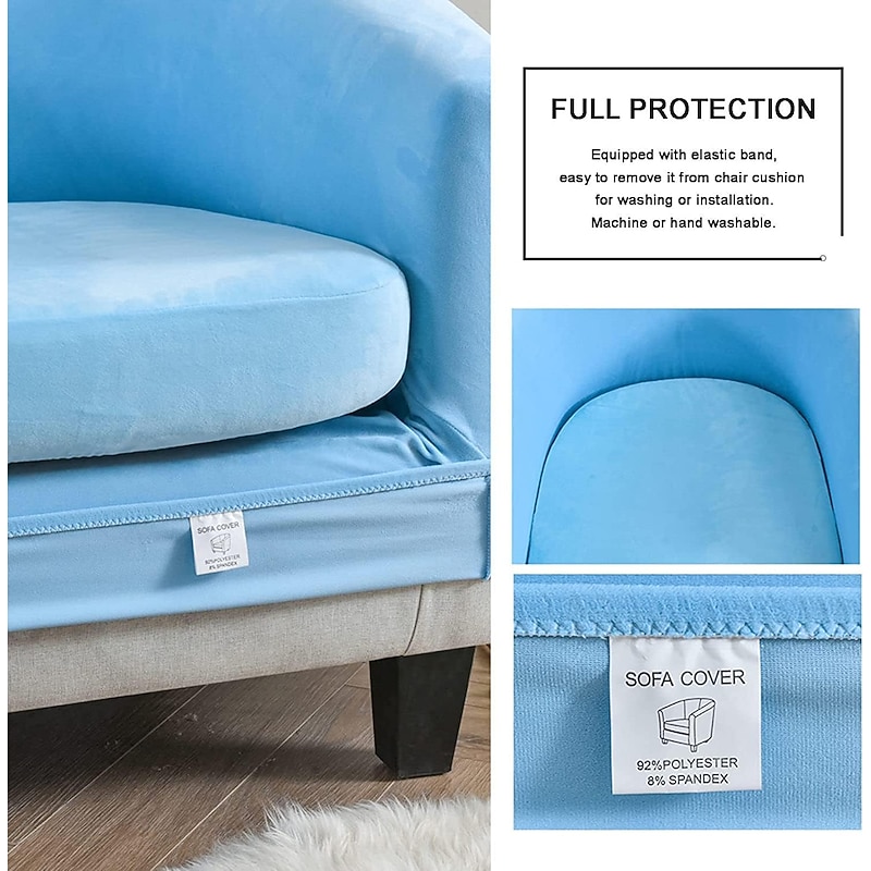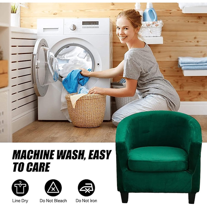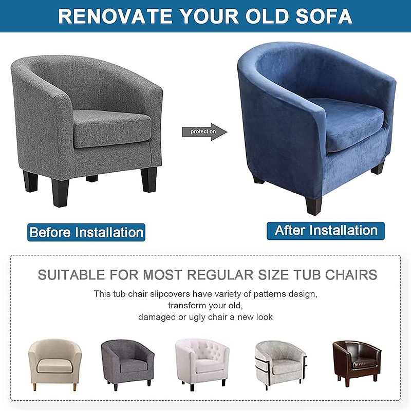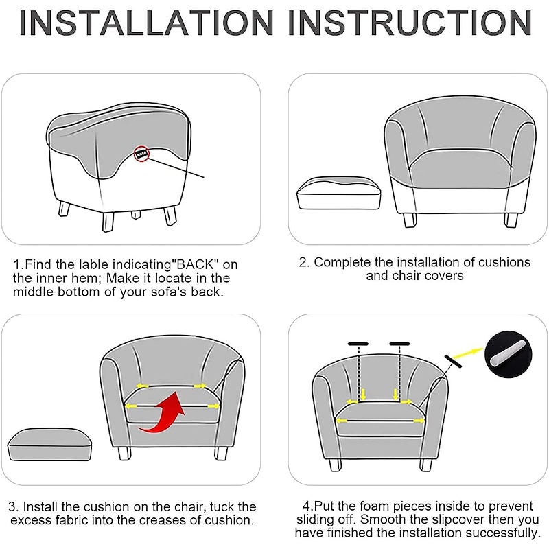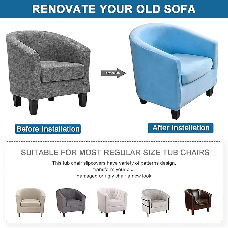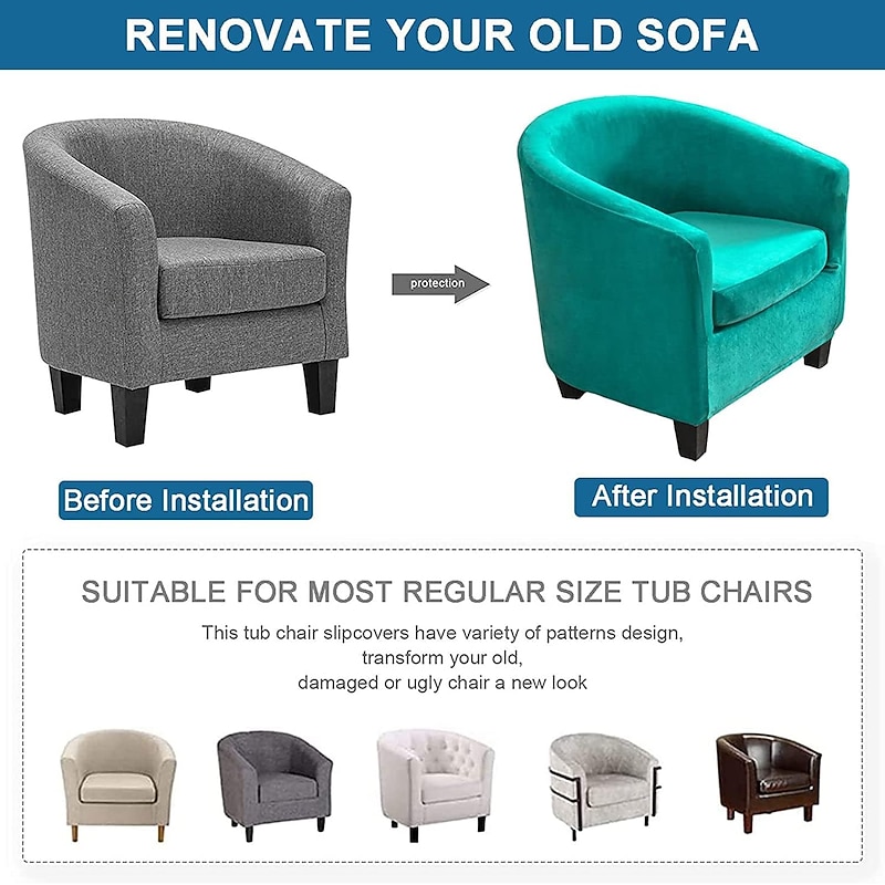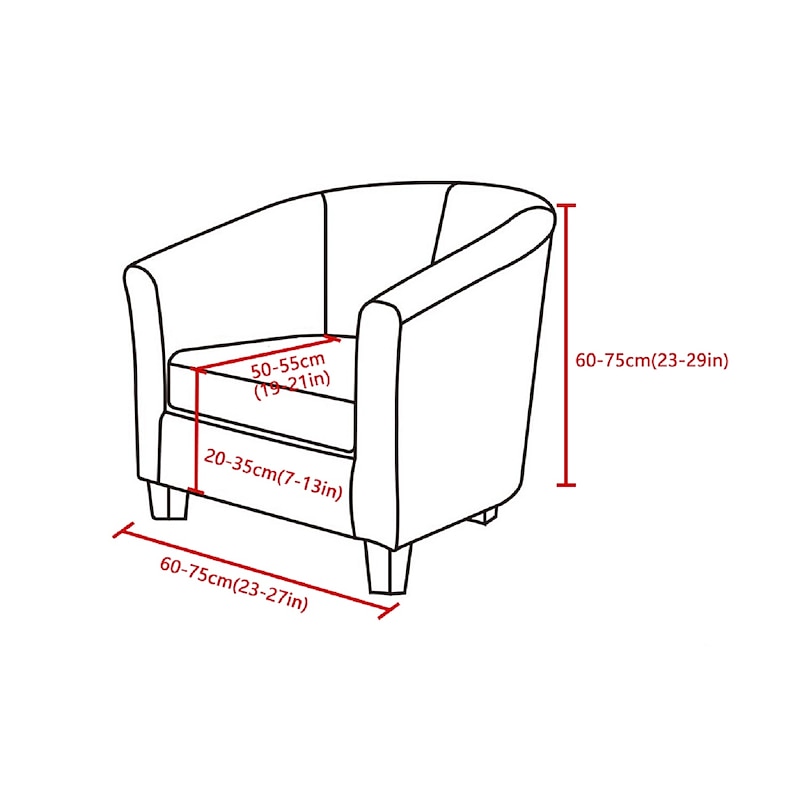 Highlights 1. SLIGHT COLOR NOTE: Please note that slight color difference should be acceptable due to the light and screen. 2. PERFECT SIZE: Length: 60-75cm(23-27in);  Width: 50-55cm(19-21in);  Height: 60-75cm(23-39in). Please measure your chair before choosing. 3. PERFECT PROTECT: Our club chair covers are made of high quality polyester and spandex jacquard fabric which is new upgraded, featuring two-way high elasticity, soft and comfortable, wrinkle resistant and durable, practical for your home decor. Protect your club chair from spills, stains and tearing. Great choice for homes with children and pets.High recommended 4. EASY CARE: Machine washable, wash at temperature under 30 ℃ ( 86.00 ℉). Please do not bleach, do not iron