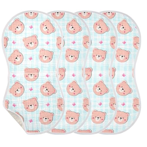 Checkered Bear Muslin Baby Burp Cloths - Super Absorbent and Soft Burping Rags - Cotton Burp Clothes Set for Boys and Girls, 1 Pack 4