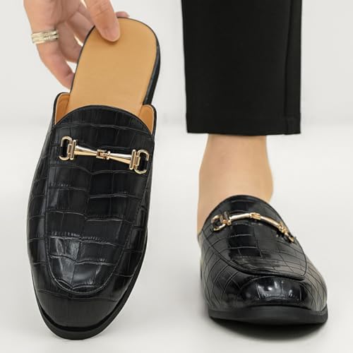Mens Retro Stone Grain Leather Slip-On Backless Mule Horsebit Smoking Slippers Round Toe Non-Slip for Business Casual Dress Prom Party 6